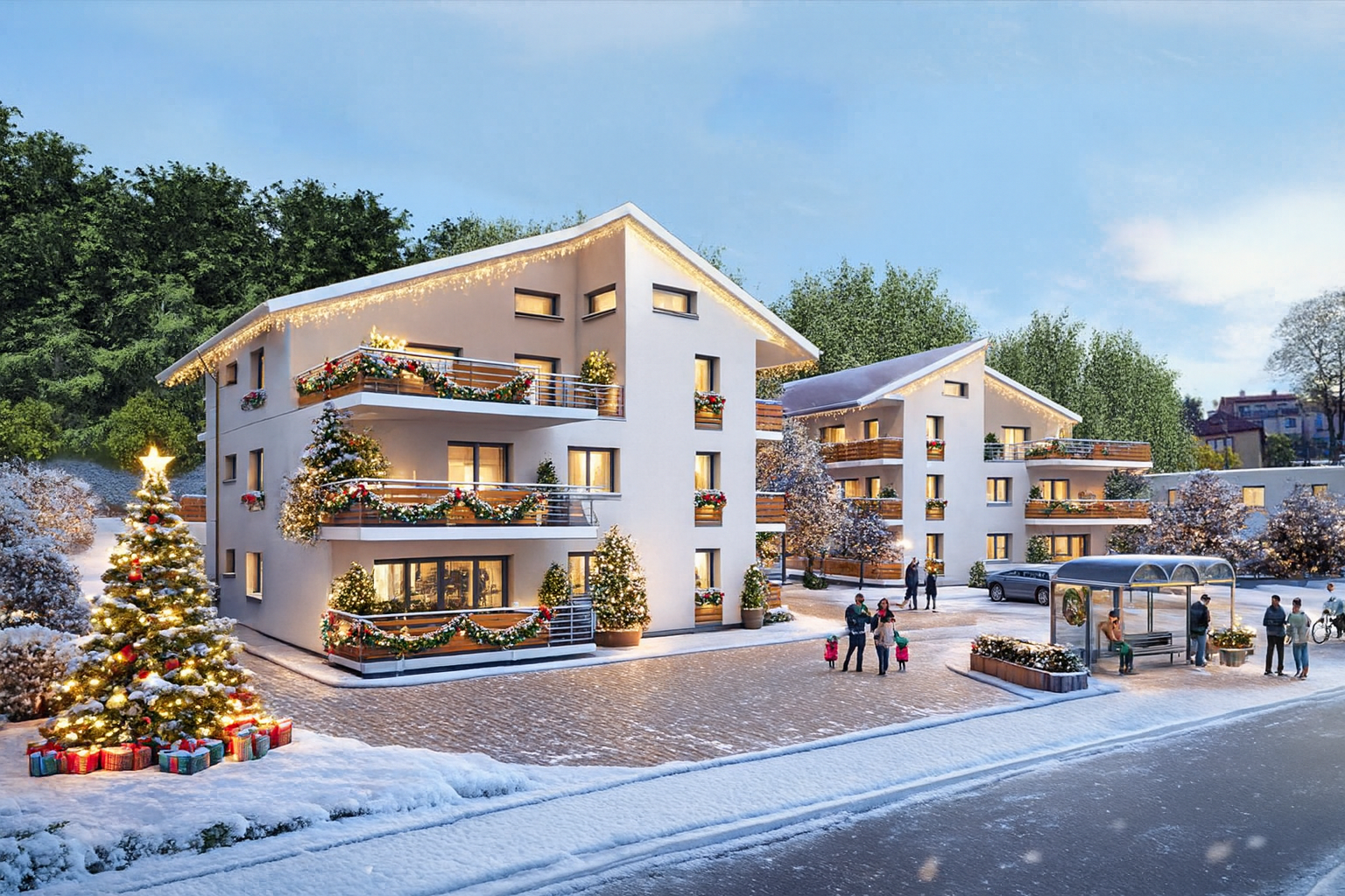Dva moderní nově postavené domy, každý disponující jedenácti byty s vlastním balkónem o velikosti 1kk až 4kk s dětským hřištěm, místem pro relaxaci, sdílenou zahradou a vlastním parkovacím místem, vše uzavřené plotem.