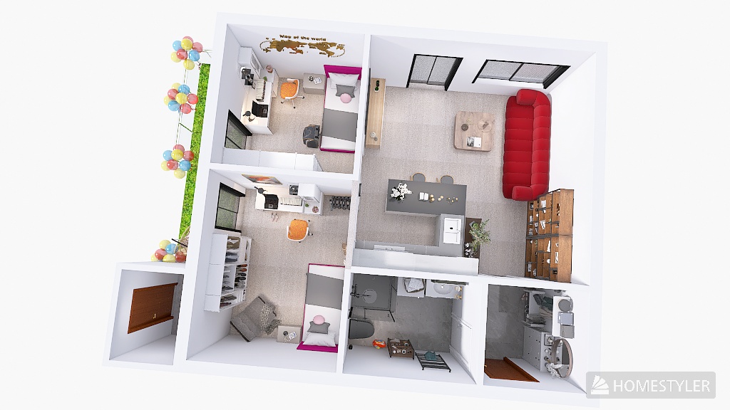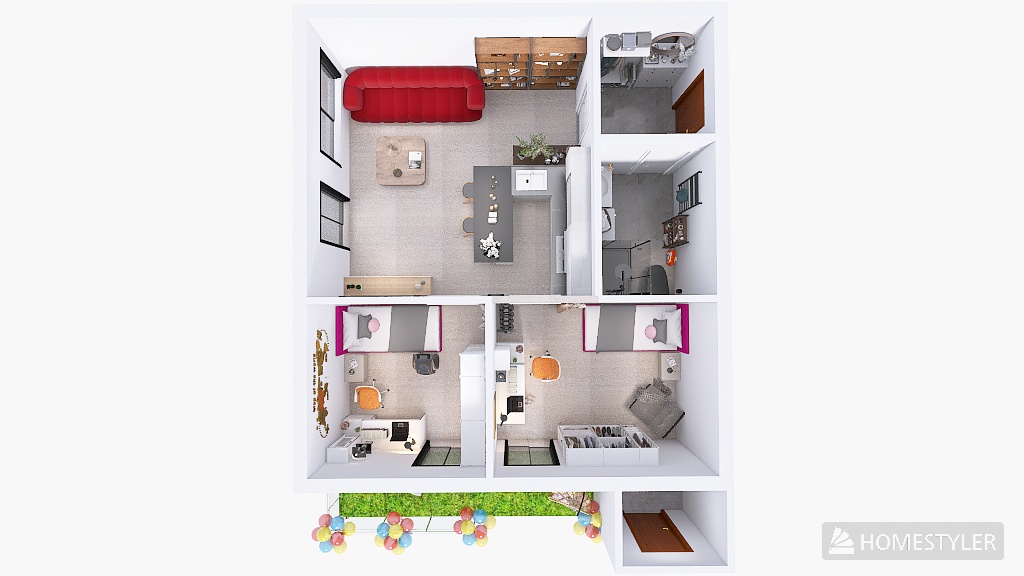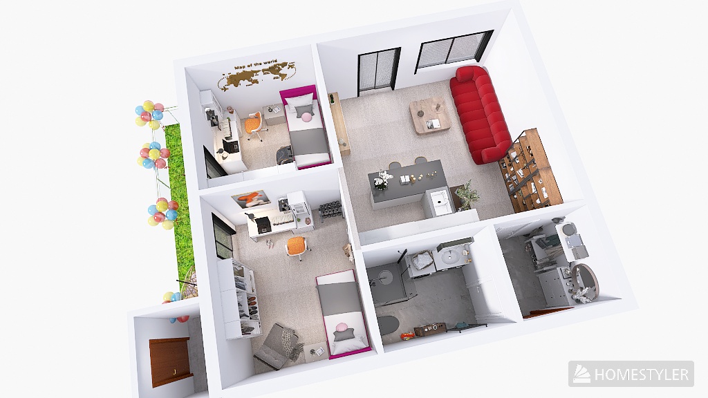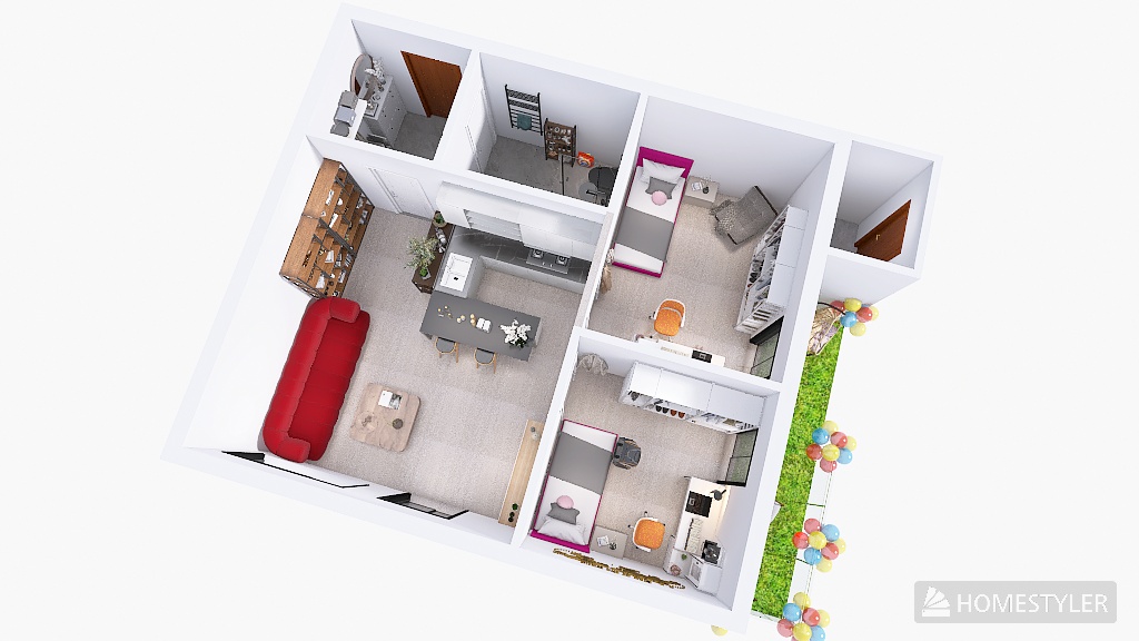Byt o dispozicích 2+kk 54 m2 + balkón 8,4 m2.