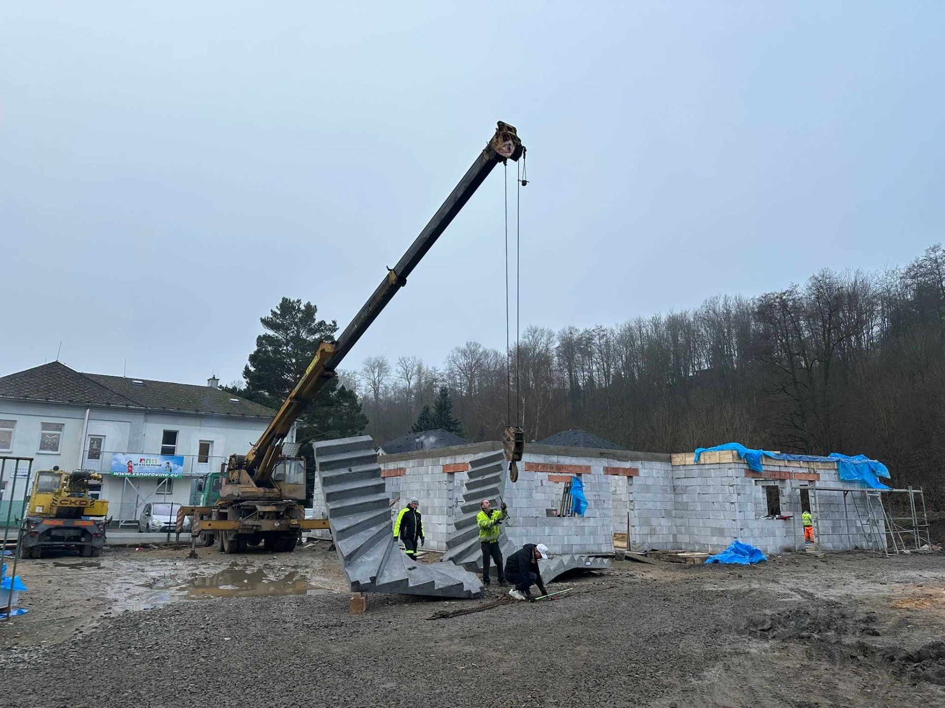 Těsně před vánočními svátky se na stavbě pracovalo na prvním patře. Bylo dovezeno schodiště, které bylo hned položeno.