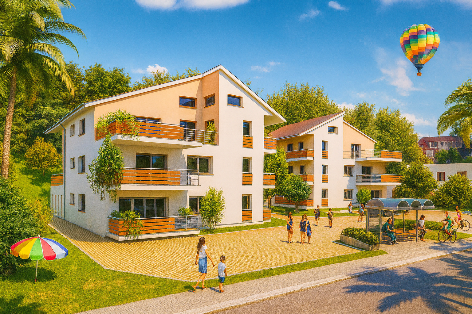 Dva nové domy se jmény Petra & Aneta, každý o jedenácti bytech. Součástí komplexu je oplocená zahrada s parkovacími místy a místem pro volný čas.